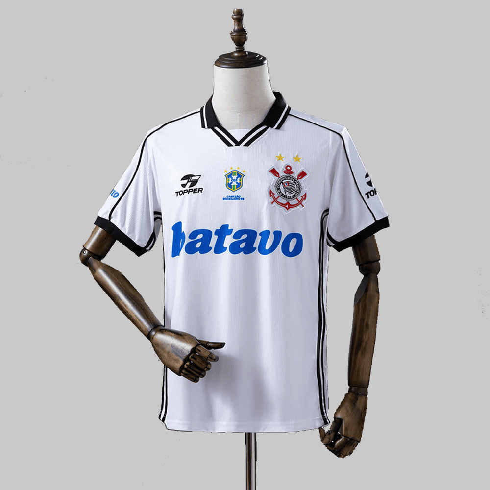 Com seu design branco clássico e o histórico patrocínio Batavo estampado no peito, o manto retrô representa a força, a fé e a paixão que marcaram a virada do milênio para o Corinthians.