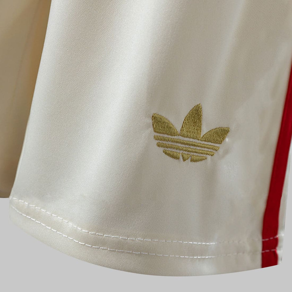 A camisa apresenta acabamento premium, escudo retrô dourado e detalhes que evocam movimento e energia, enquanto a calça acompanha o visual com leveza, conforto e o mesmo padrão de elegância.