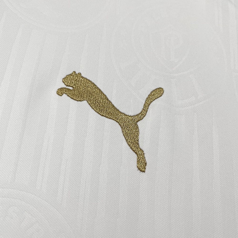 Vista o pequeno torcedor com a elegância do kit infantil Palmeiras 25/26, modelo II. A camisa branca tradicional, símbolo de histórias marcantes do Verdão, aparece em versão renovada para a temporada 25/26, com detalhes modernos e visual limpo que destaca todo o orgulho Alviverde.